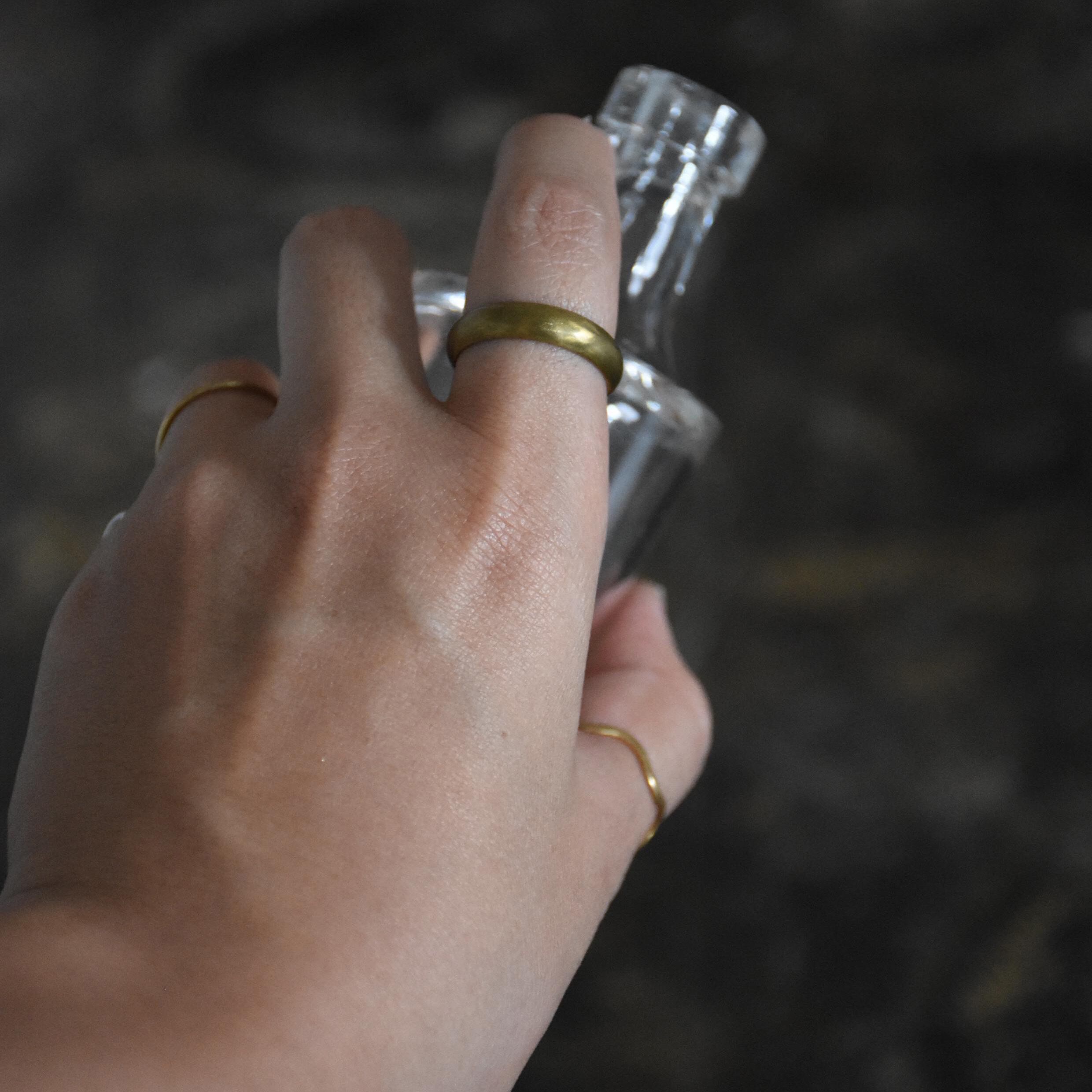メッキなどを施さない「無垢真鍮」のリングです。